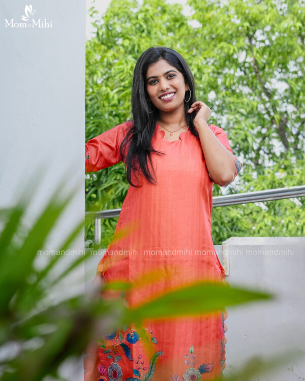 Experience elegance at its finest with our beautiful orange kalamkari kurti. This stunning piece adds a touch of sophistication to your wardrobe with its unique design and colour. Its picture perfect and perfect dress for any occasion.